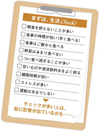 先生によると、髪の糖化は、体内の糖化と深く関係し、その大きな原因が生活習慣にあるとのことです。生活習慣が関係すると聞くとつい体型や肌のことと思いがちですが、髪とも関連があるとは……。