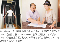 4方向から照射される赤外線で身体の部位を細かく計測。測ったサイズから、立体的なボディラインの画像を映し出すため、客観的に自分の身体を見られます。