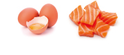 暖色系のもの 紅鮭、海老、赤身の肉、卵、明太子、小豆など
