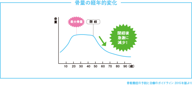 骨の強度の指標である骨密度は、閉経前後から急激に減少。これは女性である以上、避けられないことなのです。