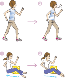 いつもの駅よりひとつ手前で降りてインターバル速歩を行うなどで、無理なくスイッチを入れることができます。 もうひとつ、『お尻歩き』も効果的です。床に座ってひざにクッションなどをはさみ、お尻を交互に動かして前後に進みます。こうすることで、体の土台を支える筋肉を鍛えることもできます。