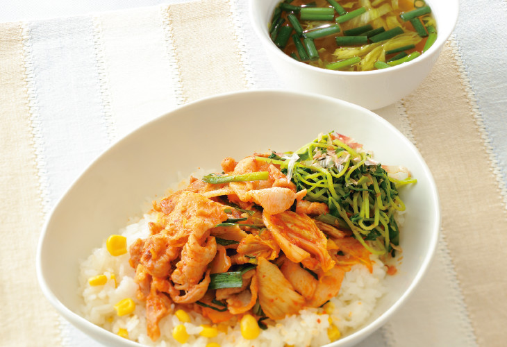 栄養バランスの整った和食“一汁三菜”を、ひとつの“どんぶり”と“お汁”で気軽に楽しむ『一汁多彩』。「コーンご飯の豚キムチどんぶり」をはじめ「たこのトマト煮チーズどんぶり」「薬味たっぷり冷汁どんぶり」と、夏に食べたいスタミナメニューの厳選3レシピをご紹介します。