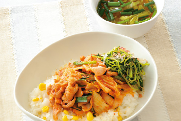 栄養バランスの整った和食“一汁三菜”を、ひとつの“どんぶり”と“お汁”で気軽に楽しむ『一汁多彩』。「コーンご飯の豚キムチどんぶり」をはじめ「たこのトマト煮チーズどんぶり」「薬味たっぷり冷汁どんぶり」と、夏に食べたいスタミナメニューの厳選3レシピをご紹介します。