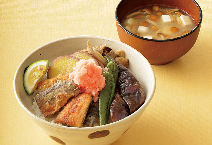 栄養バランスの整った和食“一汁三菜”を、ひとつの“どんぶり”と“お汁”で気軽に楽しむ『一汁多彩』。「さんまの竜田揚げどんぶり」をはじめ「カリッと高野豆腐&きのこクリーム煮どんぶり」「鮮やかナムルと牛肉のしぐれ煮どんぶり」と、秋の味覚満載の大満足メニュー厳選3レシピをご紹介します。
