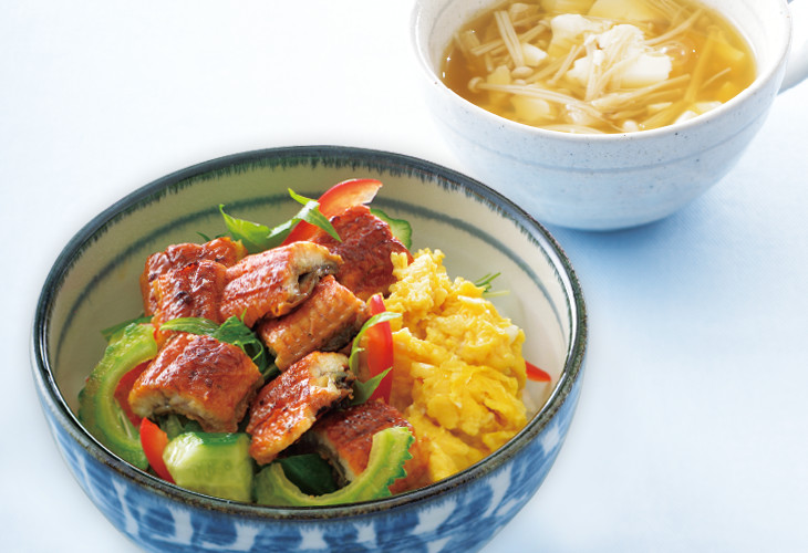 栄養バランスの整った和食“一汁三菜”を、ひとつの“どんぶり”と“お汁”で気軽に楽しむ『一汁多彩』。今回は暑い夏のパワーチャージにぴったりな、さっぱり食べられる「活力アップ!鰻入り夏サラダどんぶり」をご紹介します。