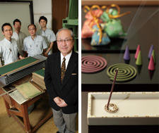 (左)本店2階にある香房では、熟練の職人がていねいに香を製造。私たちを魅了する香の原料は、漢方薬として使われているものも多いのだとか