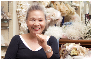 夢中で作り続けた結果、家には数えきれないほどの花があふれました。周囲の人の勧めもあり、個展を開催すると、さらに多くの人が作品に魅了され、いつしか"花職人"と呼ばれるように。「女性をきれいに見せたい」という思いが強く、ブライダルデザイナーの桂由美さんなど、著名なデザイナーとのコラボレーションも実現。多くの花嫁たちを美しく彩ってきました。