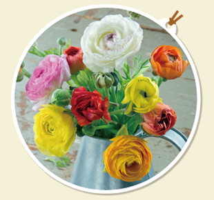 お花は飾り方もいろいろ。花びらが明るく鮮やかで、見た目もキュートなことから「とても魅力的」という意味を持つラナンキュラス。ひとつのお花でもグラデーションが楽しめるので、一輪で飾っても印象が強く、存在感があります。数本まとめてカラフルにすれば、空間に元気を与えてくれますよ。