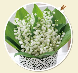 小花の集合で純粋さを強調。春に一斉に咲き誇ることから、「幸せの訪れ」という花言葉があるすずらん。また、小さな花が集まった容姿から「純粋」との花言葉も持っています。清楚なイメージを強調するなら数本まとめるのがオススメです。幸せいっぱいの気分になりますね。