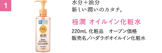 )。水分を浸透させてオイルで密封するという発想で、潤いをキープ。みずみずしい使い心地で、オイル初心者でもトライしやすいと思います
