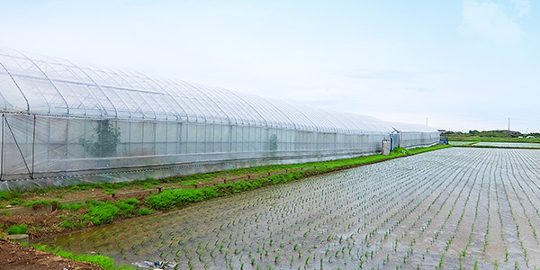 ピーマンのビニールハウスや水稲が広がる神栖市
