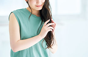 ドライヤーの熱もダメージの原因になりますが、自然乾燥はよくありません。髪が濡れているときは、髪の内部が非常に弱い状態になり、キューティクル(髪の外側にある組織)がはがれるなどのダメージを受けやすくなるからです。特に、濡れたまま寝るのは×。枕との摩擦によって大きなダメージを受けてしまいます。洗髪後は、低温に設定したドライヤーを使うのが髪を傷めない秘訣。60~80度だと、ダメージを抑えられると言われています。最近は、低温に設定できるドライヤーもあります(【スカルプモード】【毛先ケアモード】などと設定されていることも)。温度設定できないドライヤーの場合は、できるだけ髪から離して使うとよいでしょう。熱から髪を守るヘアオイルを使うのもおすすめです。