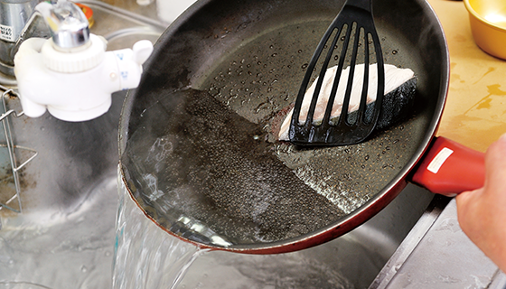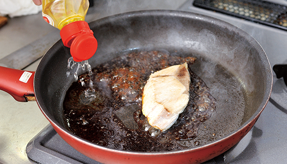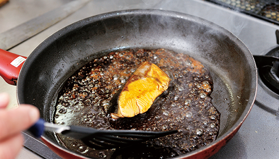 沸騰させずに茹でることで、魚のタンパク質がゆるやかに凝固してふっくらする。それに、全体にむらなく火が通っているから、あとはフライパンの湯を切って、酒、みりん、醤油を加えて仕上げるだけだ。ひと手間加えるというと、面倒だと感じるかもしれないけど、これによっておいしくなる上に、調理時間を短縮できるんだ。