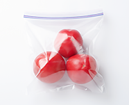 完熟トマトはポリ袋のまま野菜室で保存。つぶれてしまうので重ならないようにしましょう。青い部分が残っているトマトは常温で追熟させ赤くなってから冷蔵庫へ。