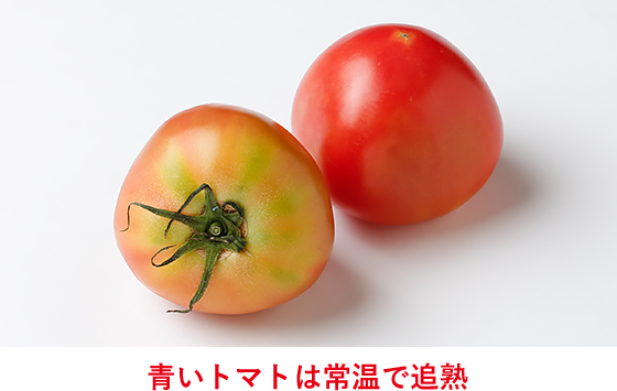 完熟トマトはポリ袋のまま野菜室で保存。つぶれてしまうので重ならないようにしましょう。青い部分が残っているトマトは常温で追熟させ赤くなってから冷蔵庫へ。