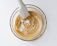 ゴマだれを作る。練りごまはゴムベラなどでなめらかにし、砂糖を入れてよく混ぜる。みりん、しょうゆを順に加えながら混ぜる。