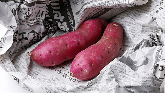 さつまいもは寒さと乾燥に弱いので、丸ごとの場合は新聞紙で包み、常温で保存。切った場合は、切り口が空気に触れにくいようにラップで包み、冷蔵庫の野菜室で保存しましょう。