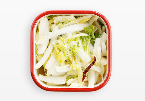 白菜の軸と葉は味の浸み込み方が違います。軸は味がつきにくいのですがシャキッとした食感が楽しめ、葉はしっかりと味がなじみます。葉と軸をいっしょに食べるとおいしくいただけます。