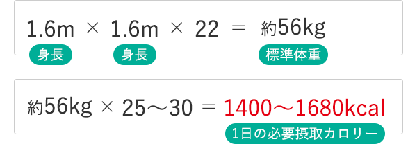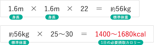(例)身長160cmの人の1日の必要摂取カロリー