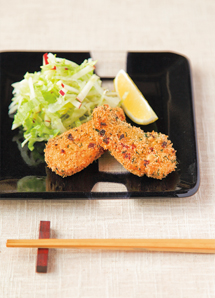 調理のPoint 高温で揚げると衣の中のハムが焦げてしまうので、油の温度には注意しましょう。