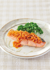 消化機能を増進させる鮭と香味野菜で、メインディッシュを。 鮭のらっきょう香味ダレ