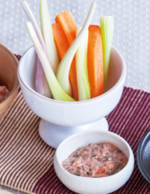 ②梅干しは種を取り、みじん切りにした大葉と混ぜ合わせ、マヨネーズを加える。①を付けてどうぞ。