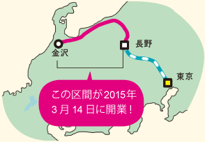 すでに開業している東京〜長野の先、長野〜金沢間が3月14日に開業。これまで、東京〜金沢は鉄道で約4 時間かかっていたのが、最速2時間28分に。新型車両のE7系・W7系の新幹線は"和の未来"を表現。車内にも日本の伝統的な意匠がちりばめられ、和の趣が感じられます。