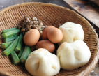 また、“地獄”が多くある鉄輪地区では、それが調理にも活用されています。温泉の蒸気で食材を蒸し上げる“地獄蒸し”は湯治場としても知られる鉄輪の名物。貸間旅館と呼ばれる湯治宿には、“地獄蒸し”のための釜が備えられ、湯治客はそれで自炊をしながら長期滞在をするのだそう。今回は、宿泊せずに“地獄蒸し”を体験できる『地獄蒸し工房 鉄輪』を訪ねることにしました。「葉もの野菜は上のほうに、しっかり蒸したい芋や肉は下のほうに入れてね」とスタッフに教わりながら、ざるに並べた食材をモウモウと湯気が上がる釜の中へ。そして、蒸し上がったものからどんどん取り出し、すべて完了するまで約30分。ふっくらホクホクに蒸し上がった食材は、旨みがギュッと閉じ込められ、温泉の塩分もほんのり効いて、とても滋味深い。ほっとするようなおいしさでした。