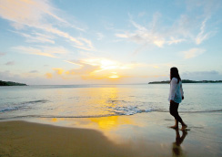 細かな川砂が堆積してできた美しいビーチで、小さな入り江に三日月のような弧を描いているのが特徴。海の向こうへと沈む夕陽が美しく、島内一のサンセットスポットとして知られています。