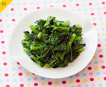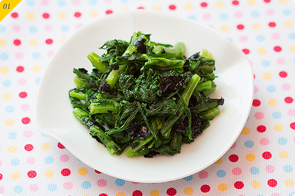 のりを使っておいしく代謝UP!太りにくい身体づくりにおすすめの作り置きおかず「春菊のりあえ」の作り方。